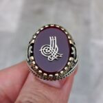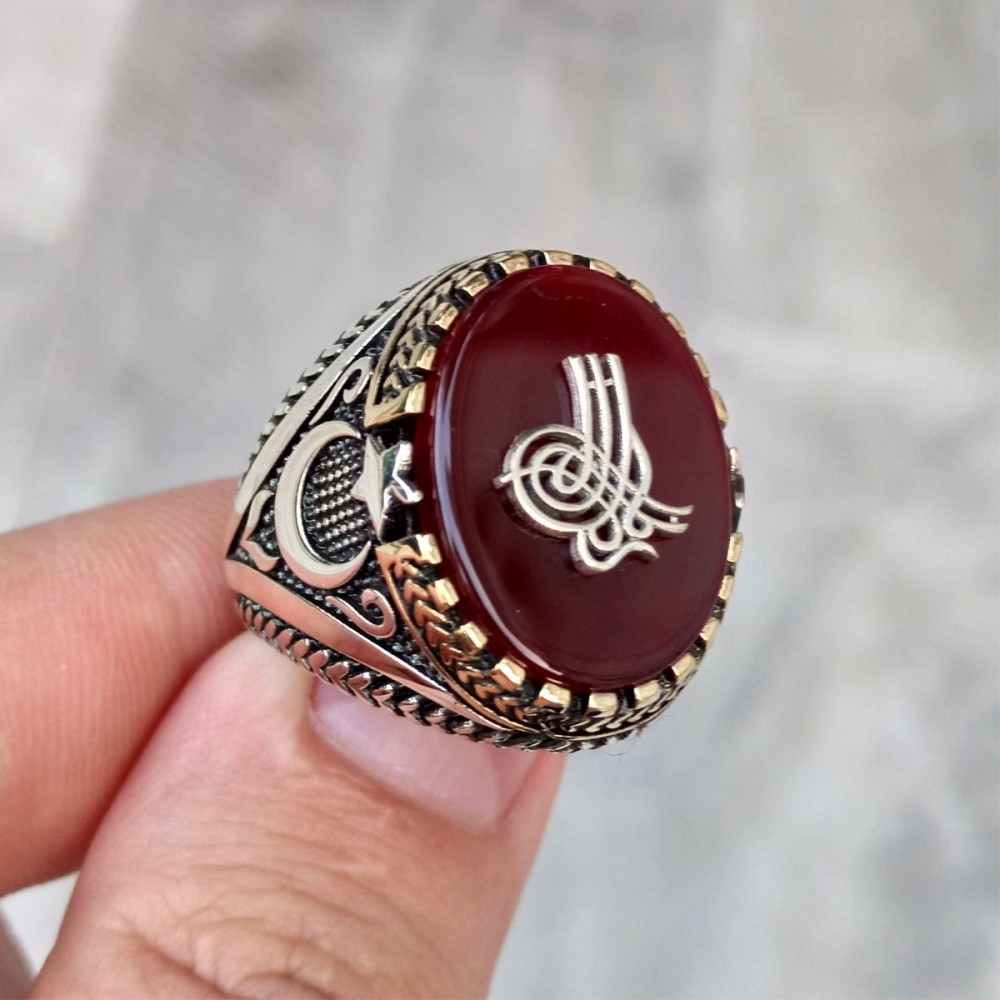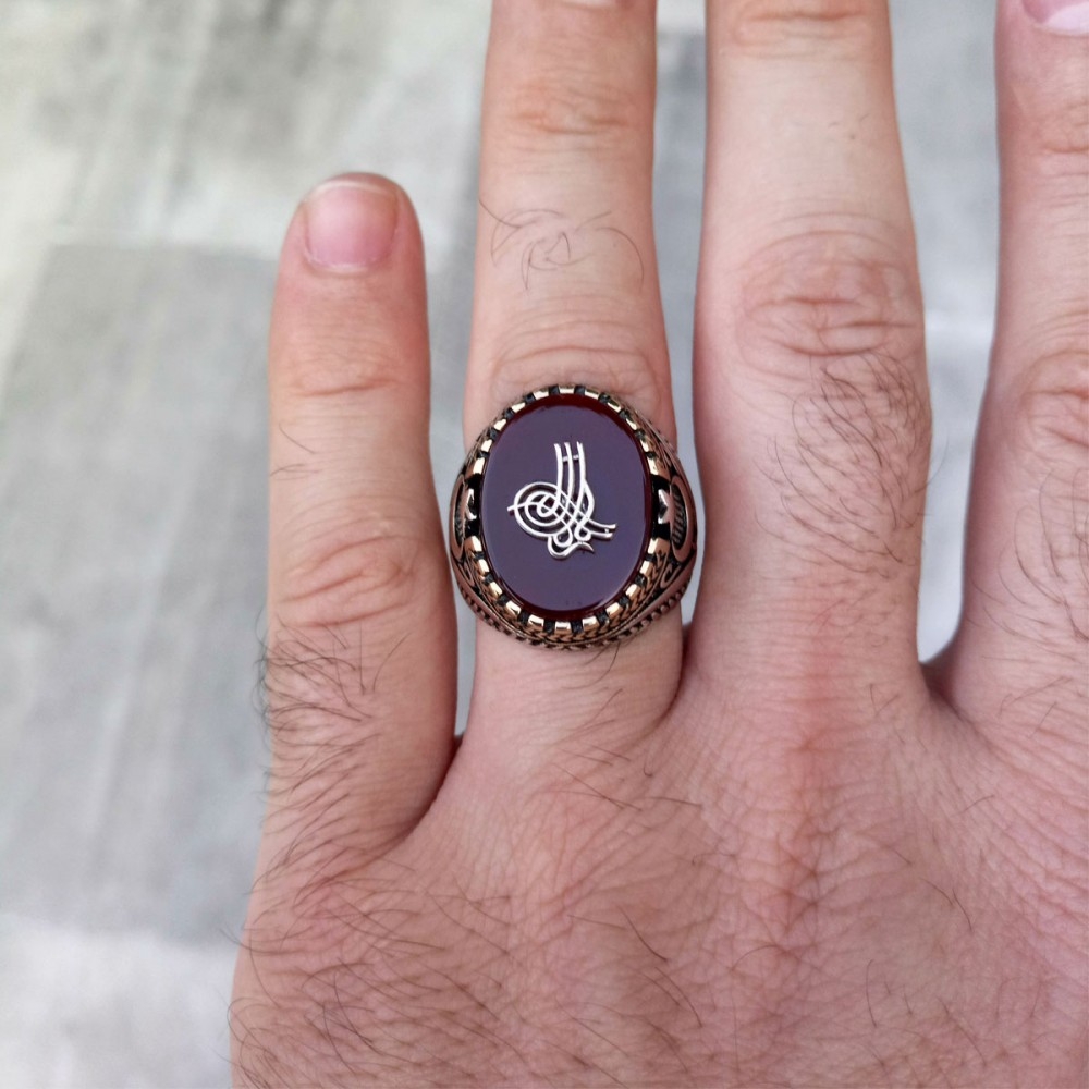 Akik Taşlı Tuğralı Erkek Gümüş Yüzük MY102076