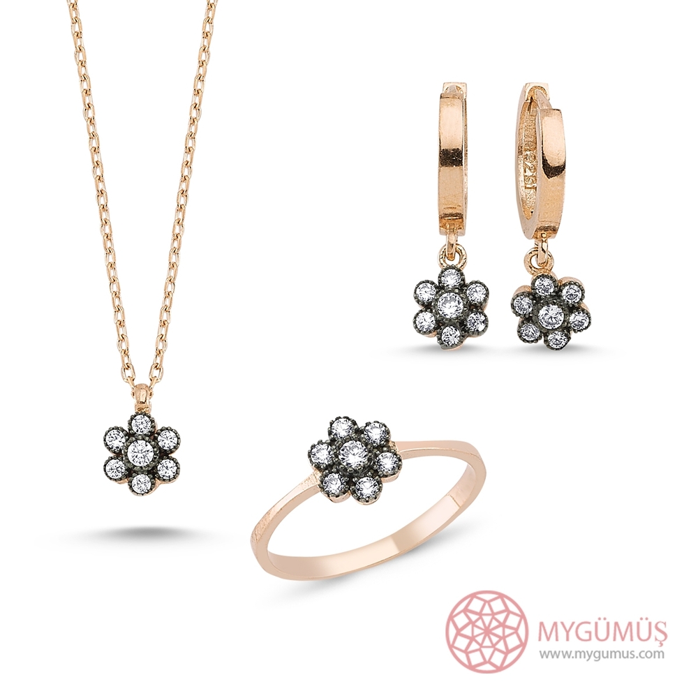 Elmas Montür Çiçek Üçlüset Kolye Küpe Yüzük MY111107