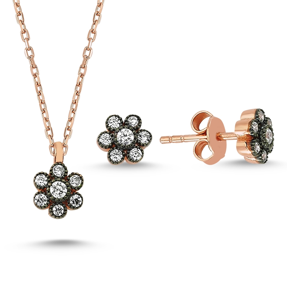 Elmas Montürlü Gümüş Kolye Küpe 2’li Miniset MY001003