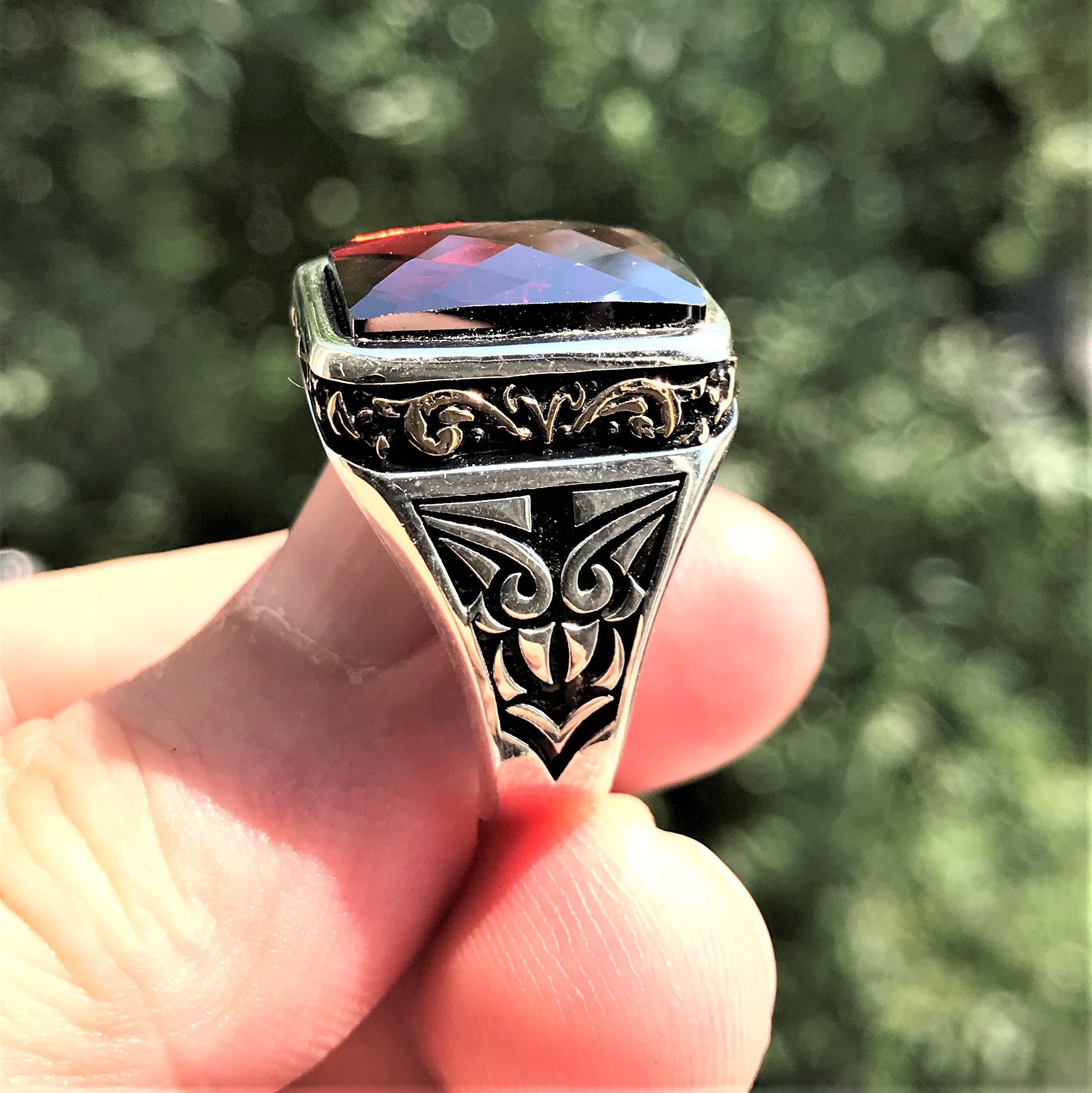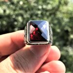 Faseta Kırmızı Taşlı Erkek Gümüş Yüzük MY102439