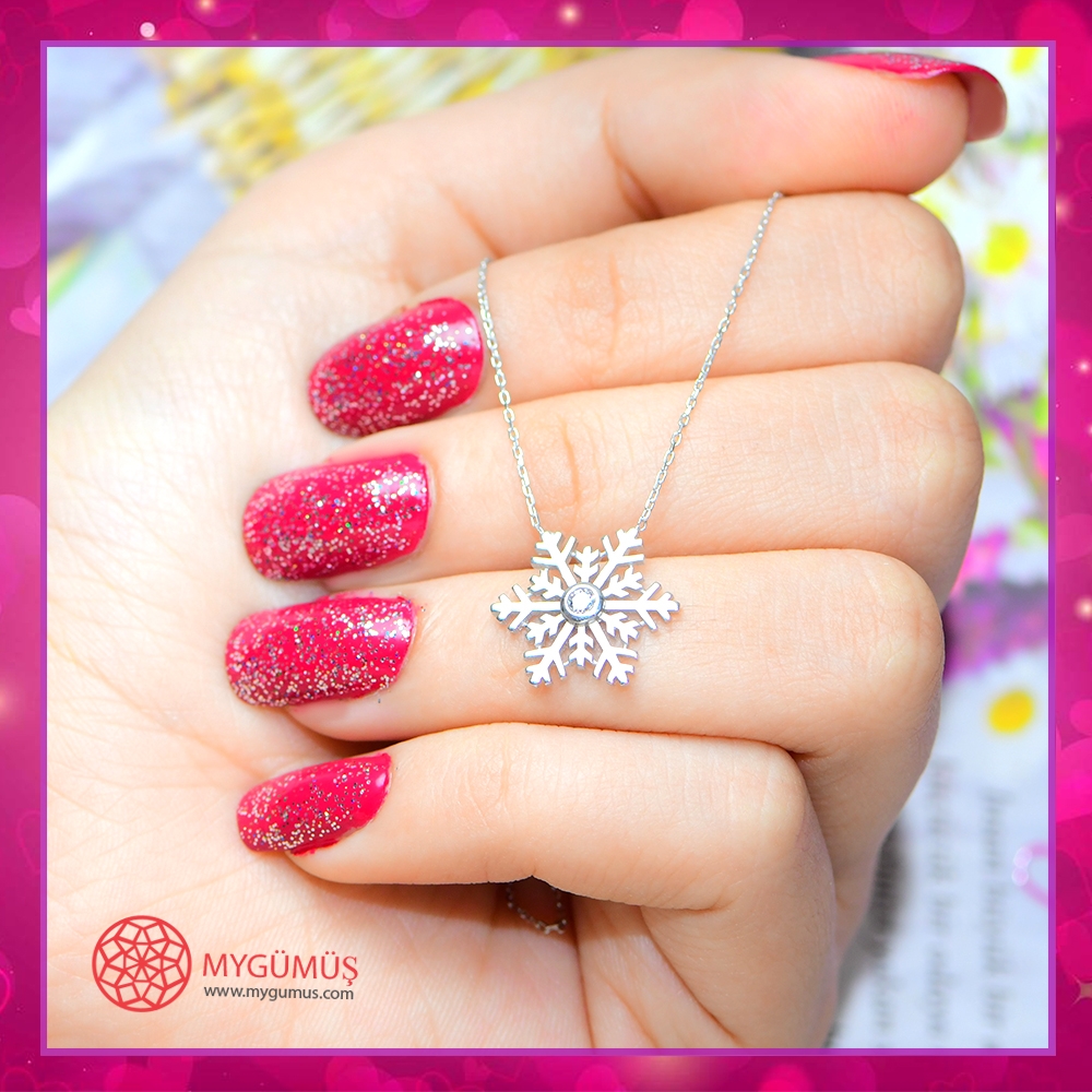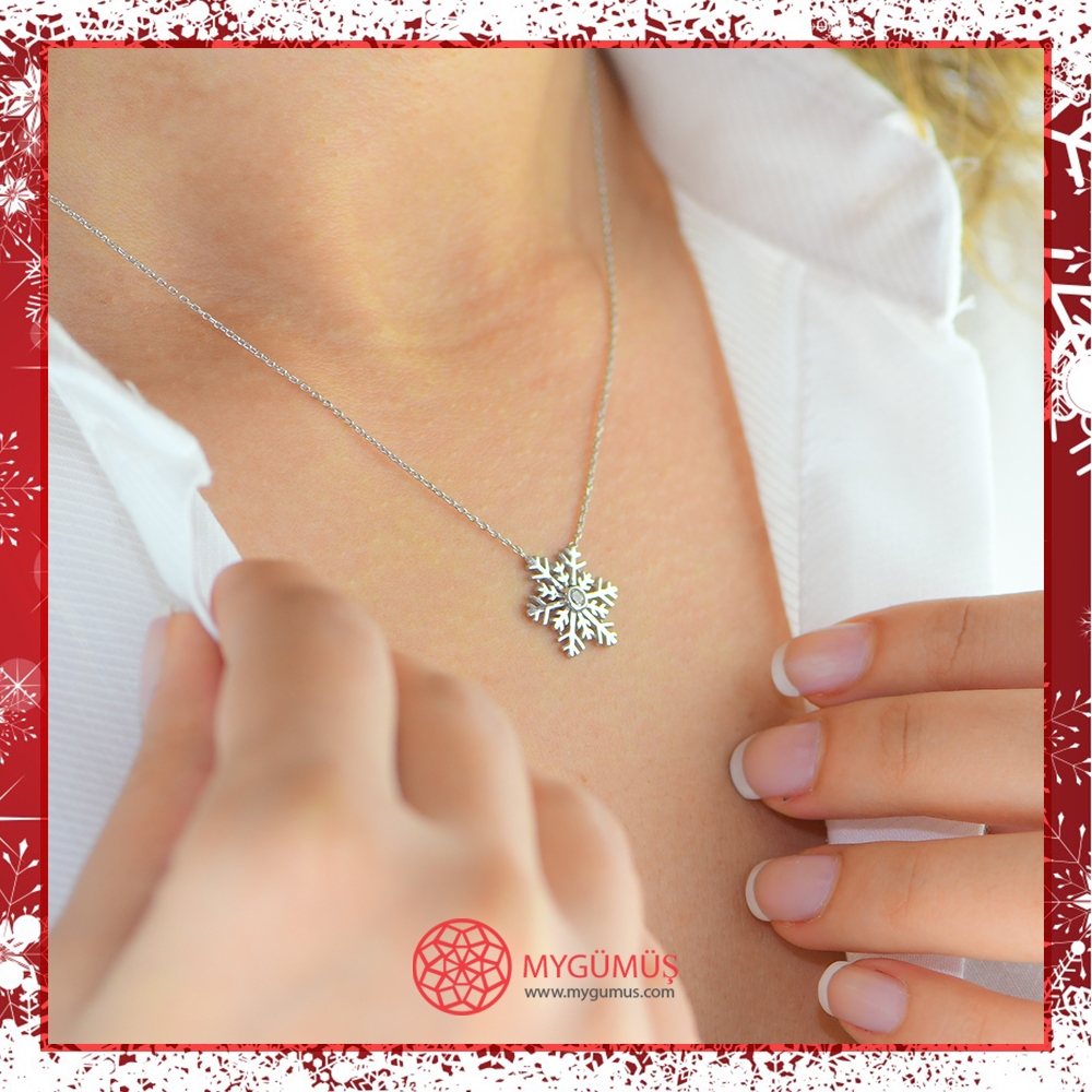Gümüş Tektaş Kar Tanesi Kolye MY100073