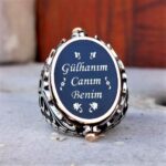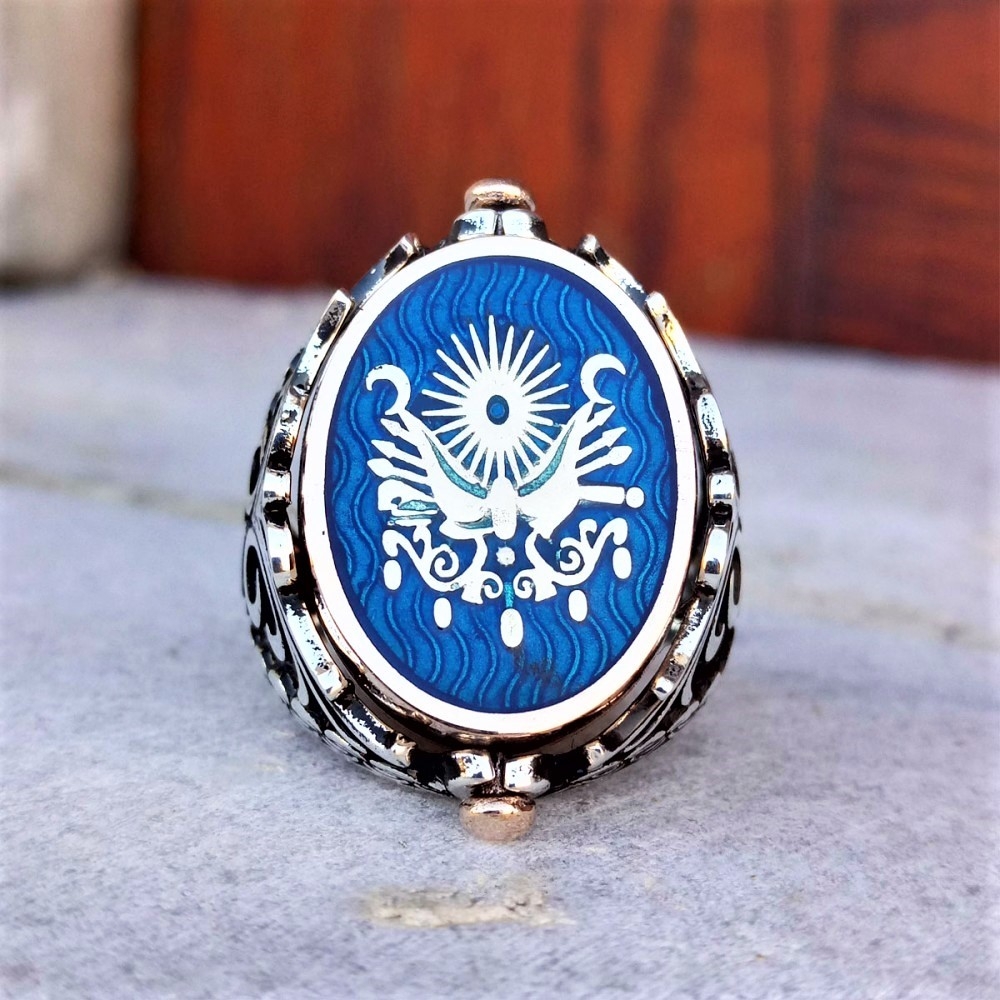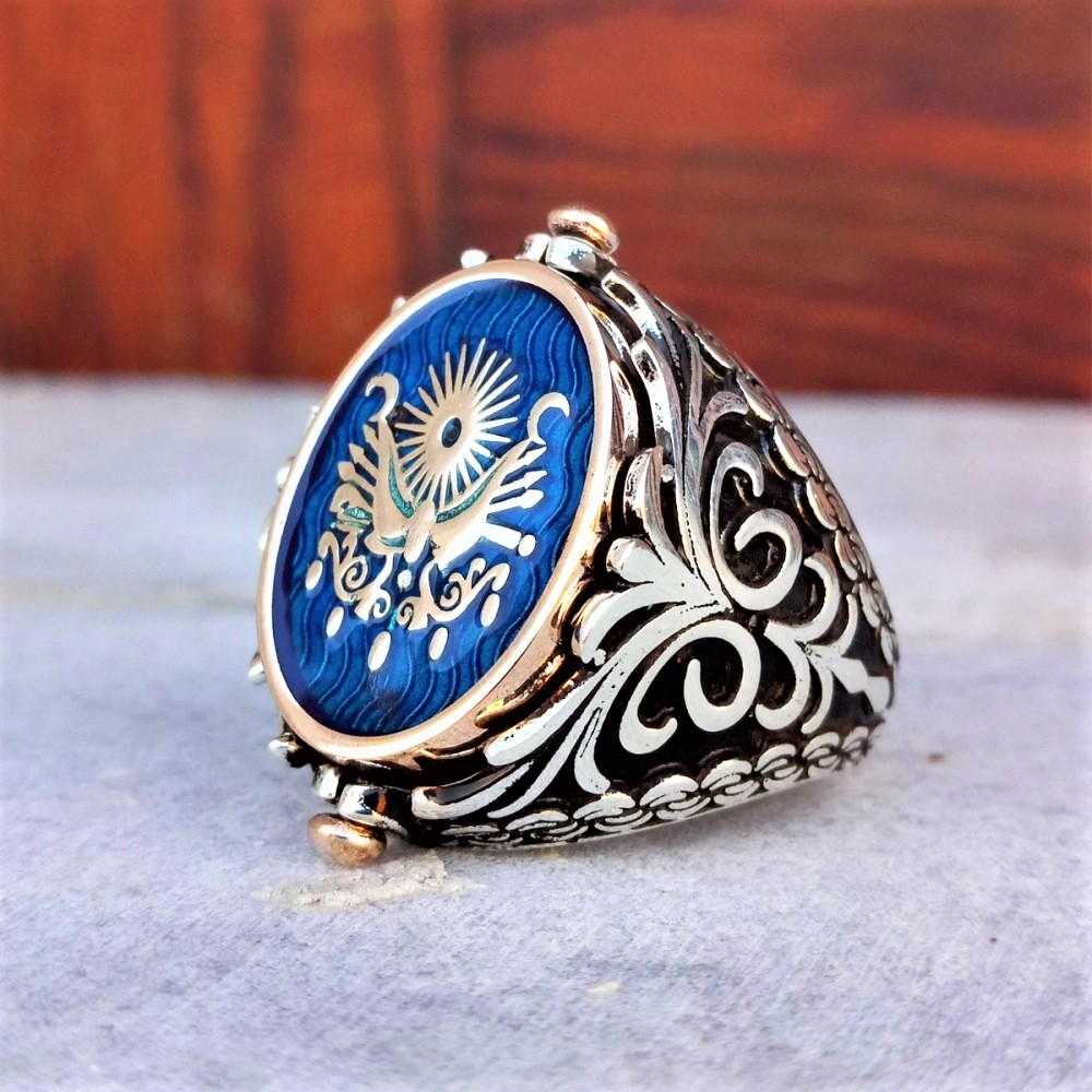 İsme Özel Çift Taraflı Navi Mineli Osmanlı Tuğralı Gümüş Erkek Yüzük MY102493