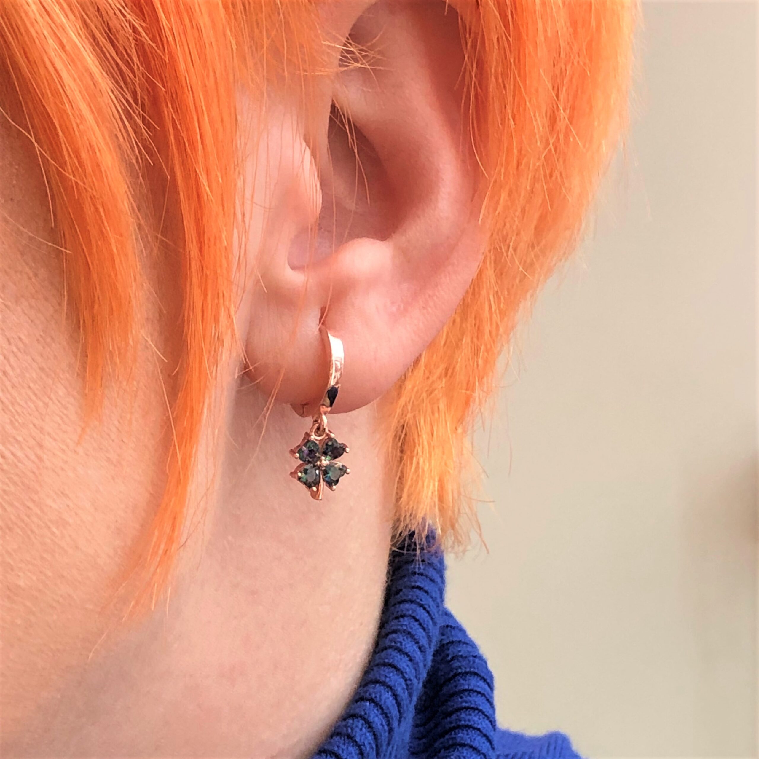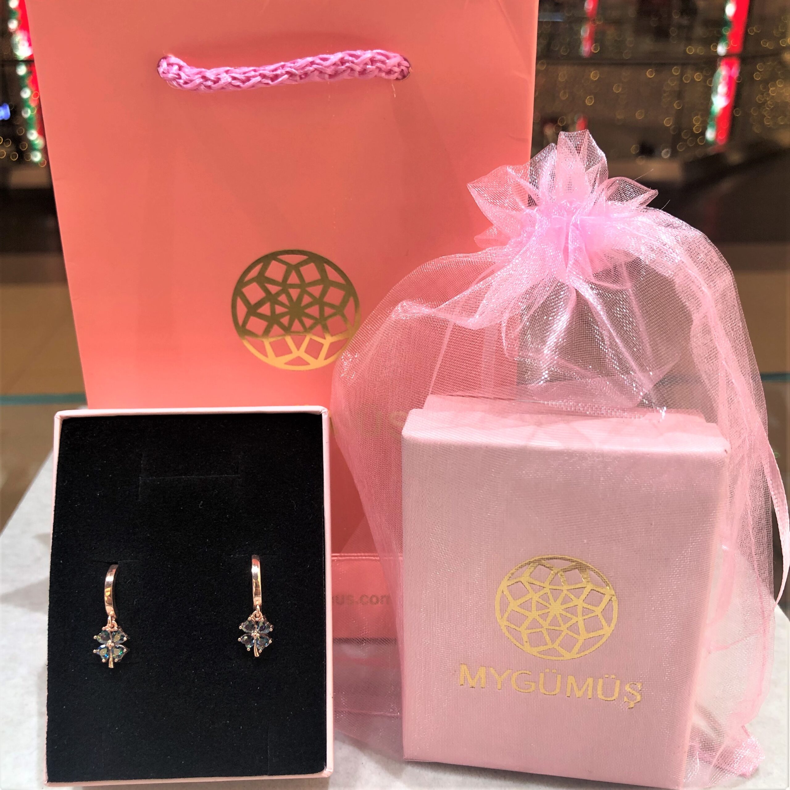 Mistik Topaz Sallantılı Yonca Gümüş Küpe MY102554