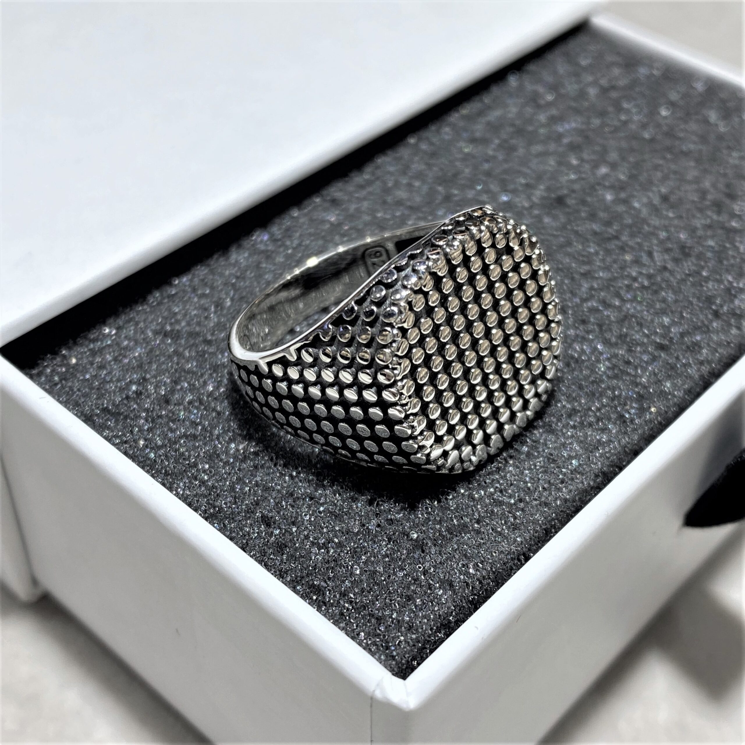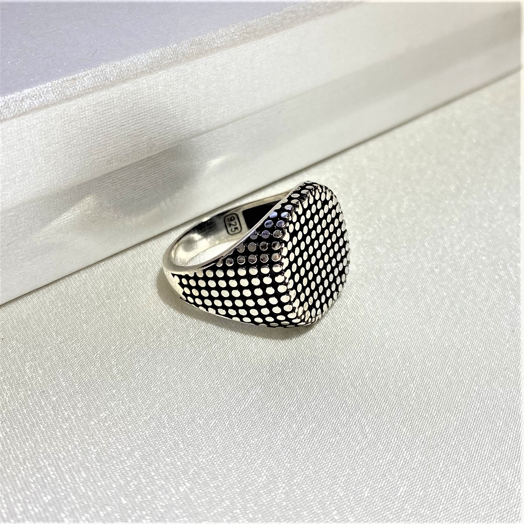 Nokta İşlemeli Erkek Gümüş Yüzük MY102469
