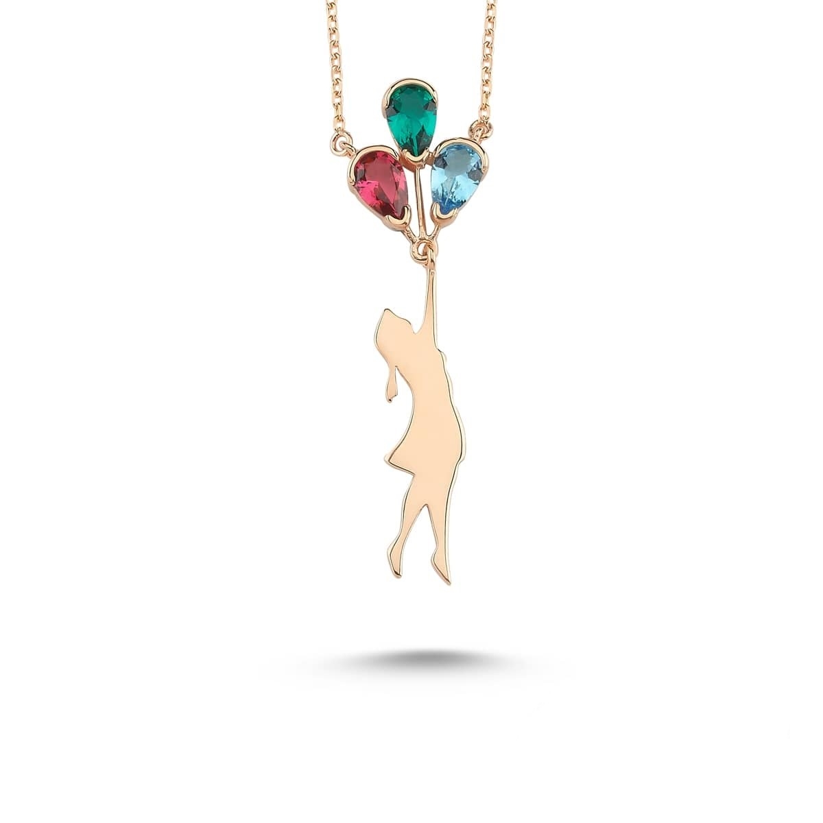 Renkli Damla Uçan Balon Gümüş Kolye MY101392