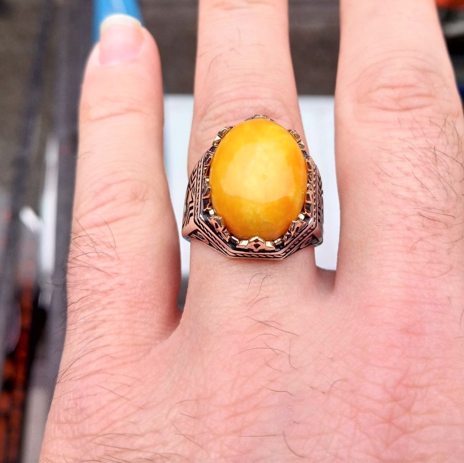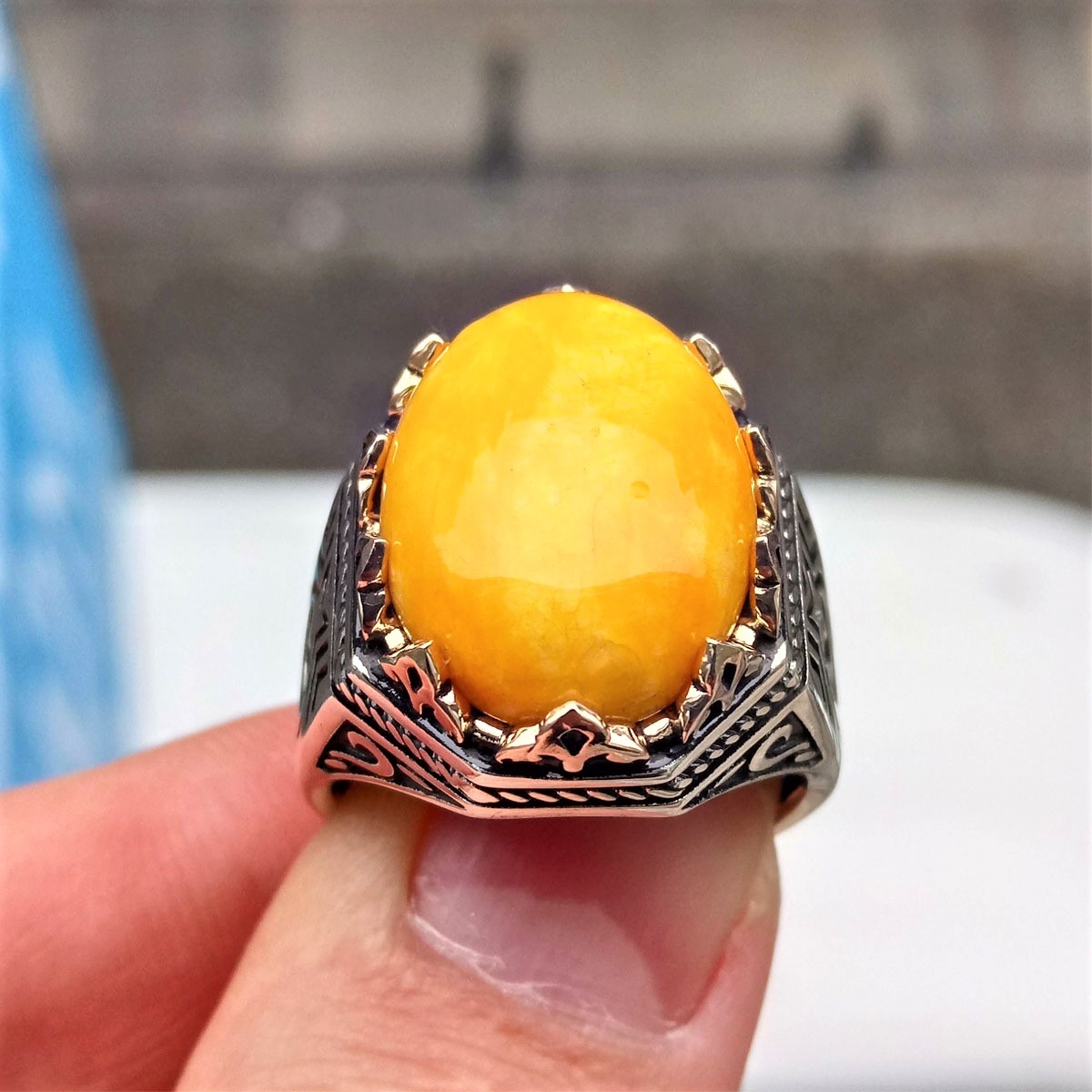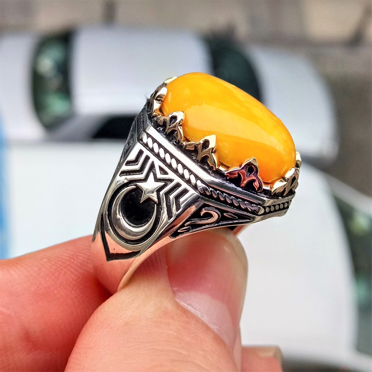 Sarı Zirkon Taşlı Ay Yıldız Erkek Gümüş Yüzük MY102239