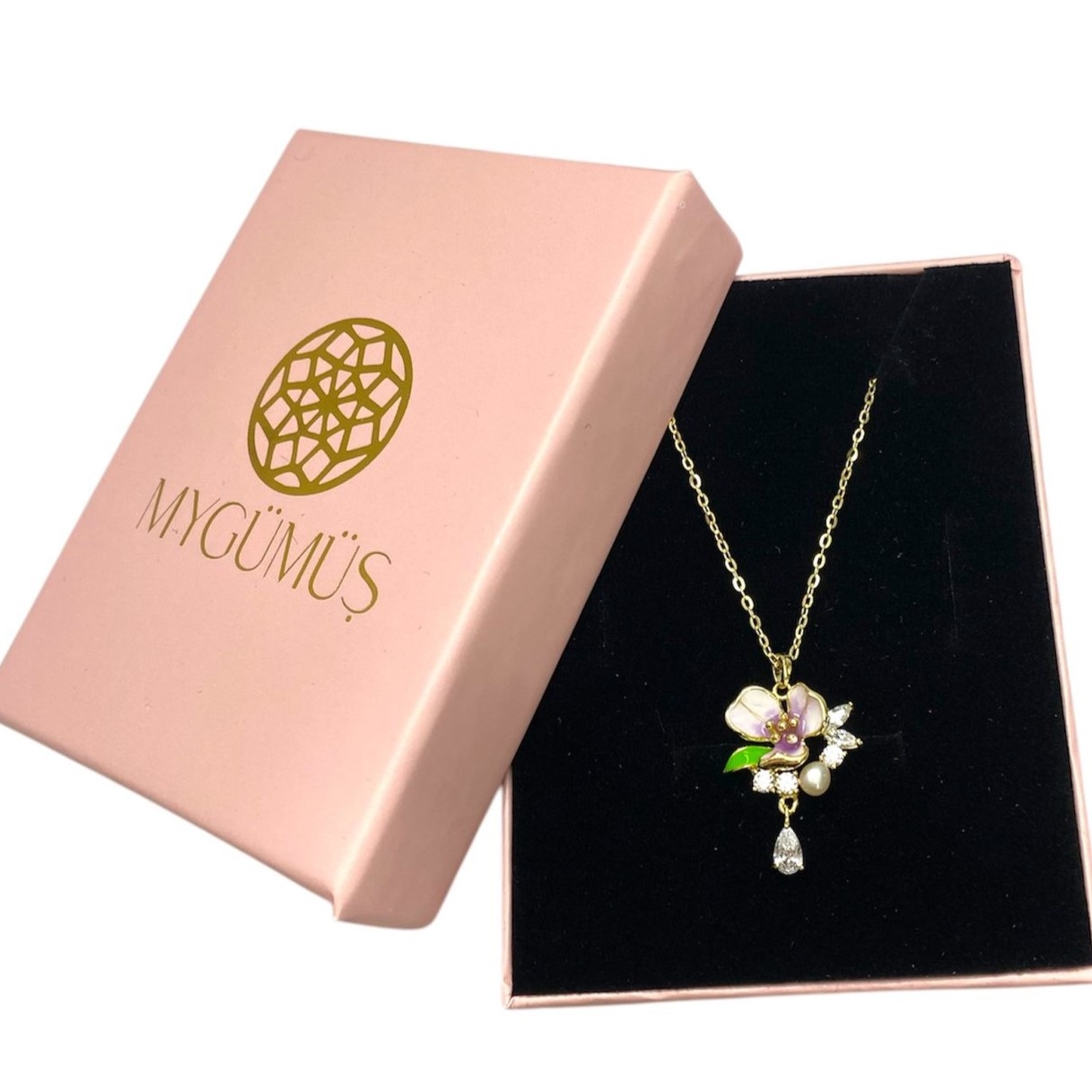 Taşlı Çiçek Gümüş Kolye MY102606