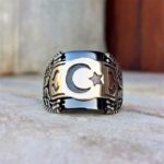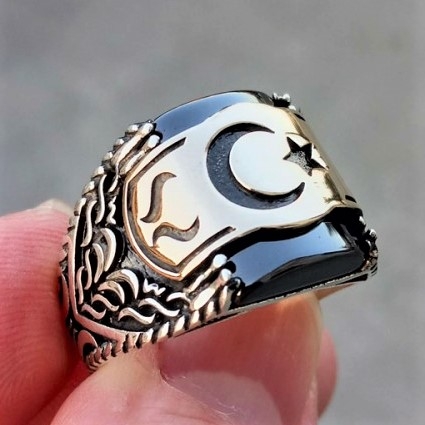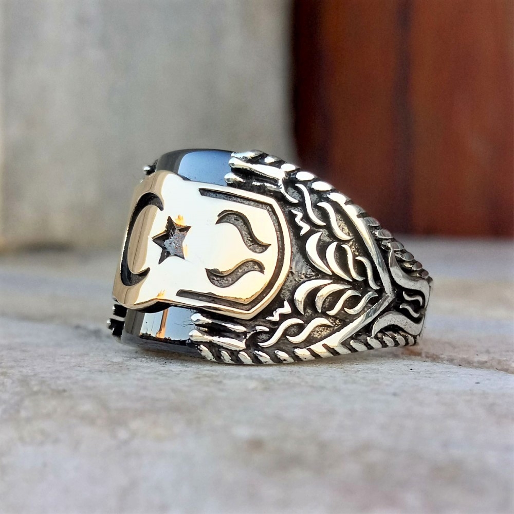 Teşkilat Siyah Taşlı Ay Yıldız Erkek Gümüş Yüzük MY102096