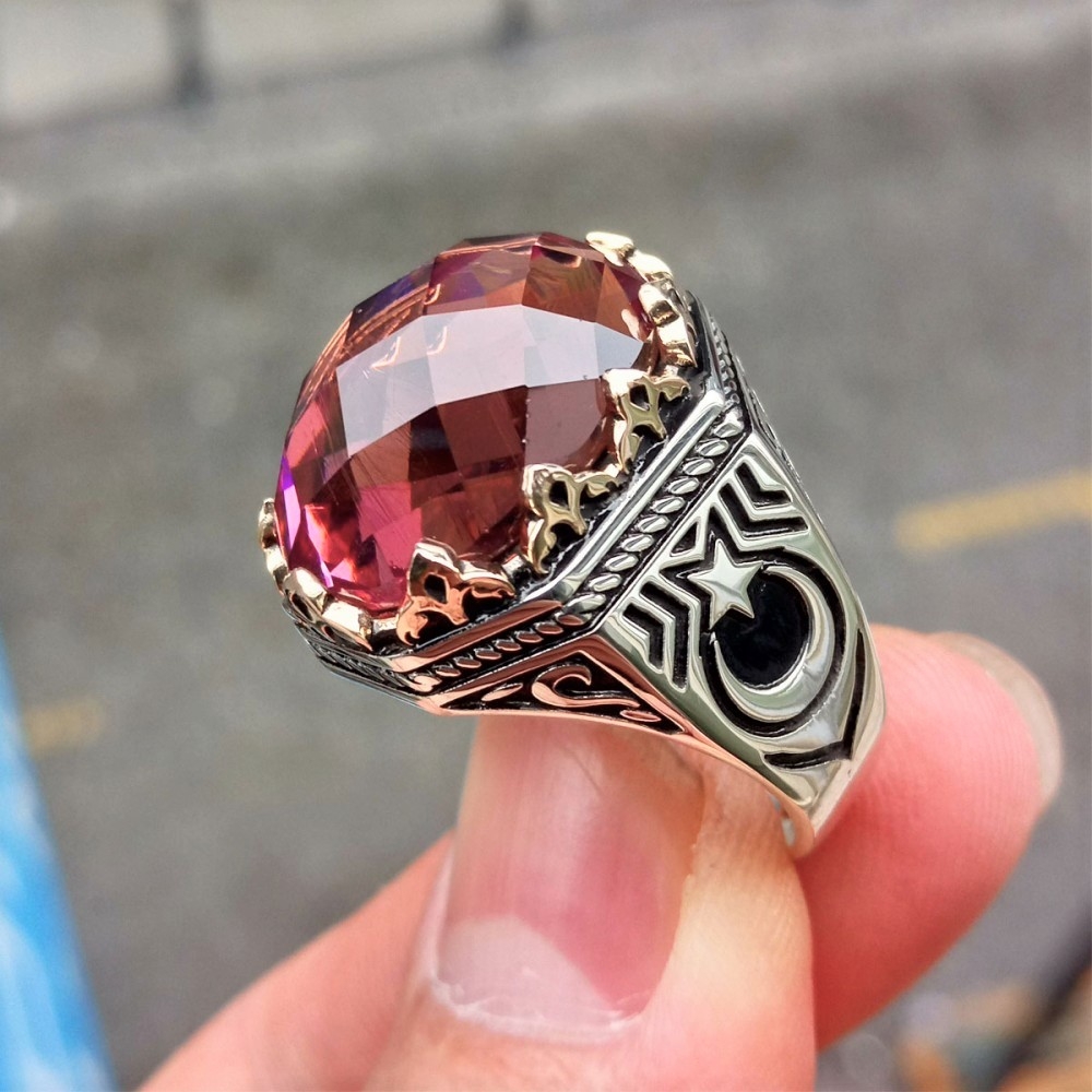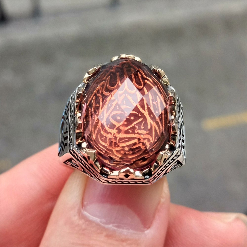 Zultanit Taşlı La Galibe İllallah Yazılı Taç Motifli Erkek Gümüş Yüzük MY102313